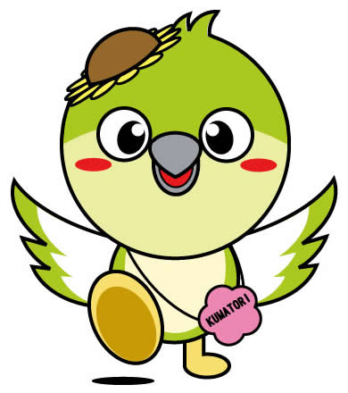 町のマスコットキャラクター「ジャンプ君」とはとっても仲良し♪(二人が並ぶと「熊(くま)」と「鳥(とり)」…!!)